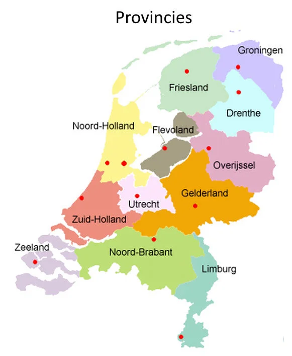 Olanda are 12 provincii. În lecția 1, am prezentat aceste regiuni. Fiecare regiune este condusă de Consiliile Provinciale. Astfel de consilii decid în chestiuni precum drumurile, mediul și proiectele de construcție. Comisarul Regelui este șeful administrației provinciale.